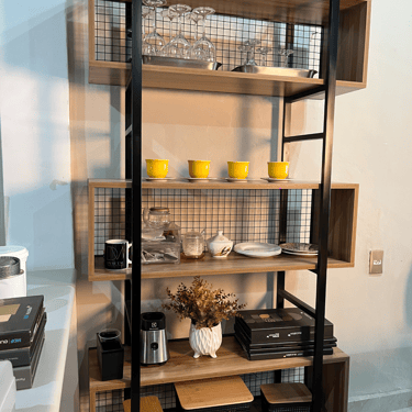 Aqui, o cliente queria uma prateleira leve no visual, mas resistente no dia a dia. O resultado foi um design moderno, com estrutura metálica e acabamento em madeira, perfeito para expor peças de arte e dar aquele toque aconchegante ao ambiente.